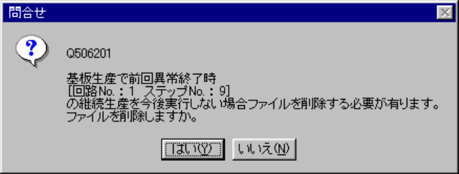 <いいえ>を選択すると削除しませんが、次回ファイル読み込み時、生産開始前処理ダ