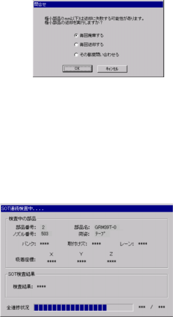 連続検査開始後直後に、部品を検査後にどう扱うかを選ぶダイアログが表示されます。