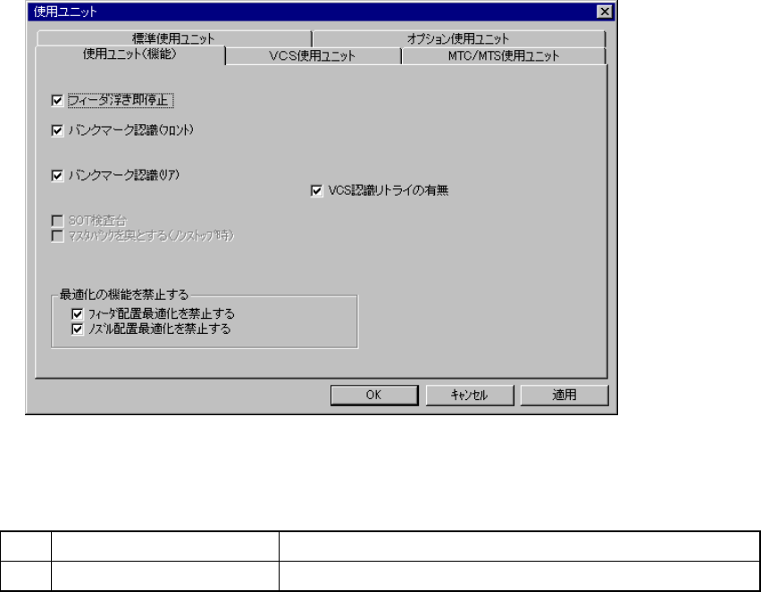 使用ユニット(機能)設定のダイアログ使用ユニット(機能)設定のダイアログ