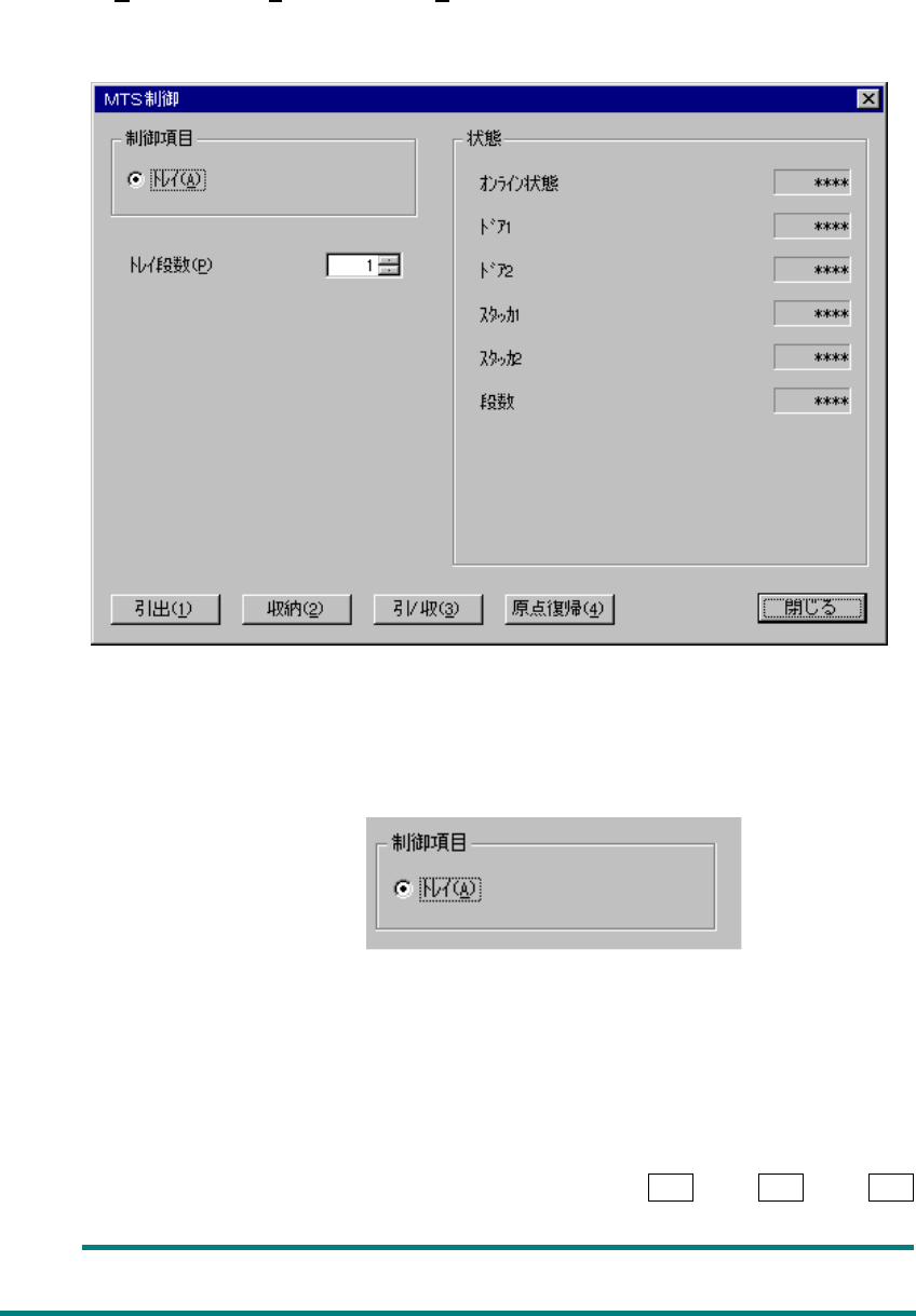 制御項目の“トレイ”がチェックされているときに<引出(1)>ボタン、<収納(2)>