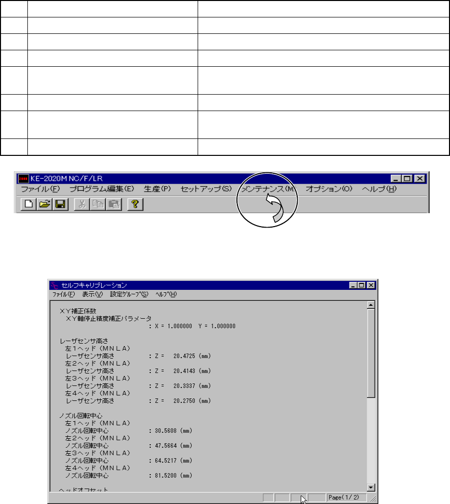 メニュバーから「メンテナンス」の中の[セルフキャリブレーション...]が選択されると,下記