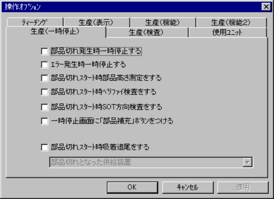 “生産(一時停止)”のタブを選択すると,図 12-4-5 の生産に於ける一時停止のオプション設定画