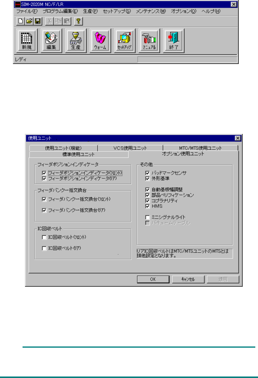 メニューバーより[セットアップ]→[マシンセットアップ]→[設定グループ]→[使用ユニ