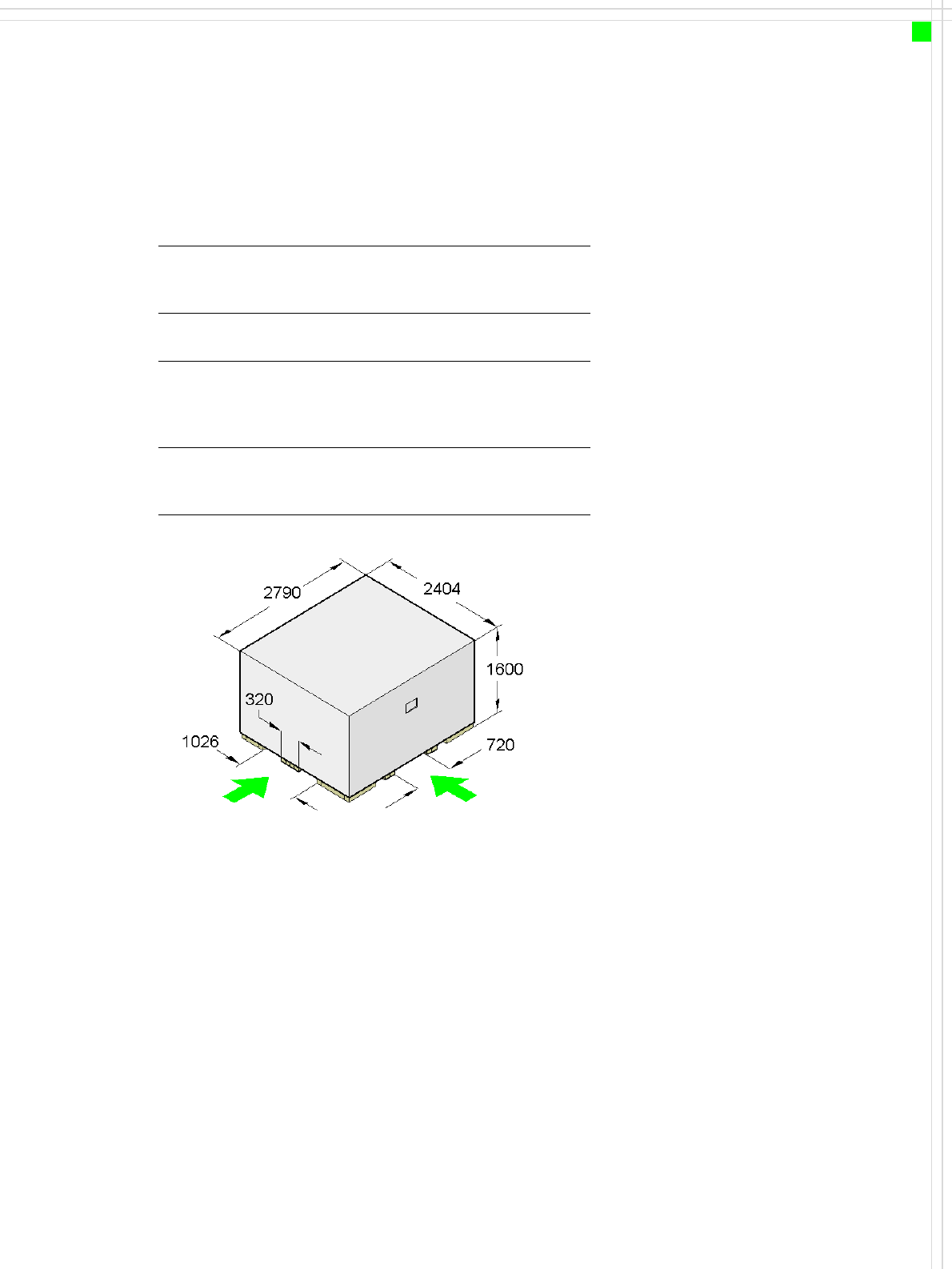 37 Engagement point for the fork-lift Engagement point for the fork-lift Technical Data Transport and Delivery Configuration Transport dimensions and weight Means of transport A fork-lift truck with the following specifi…
