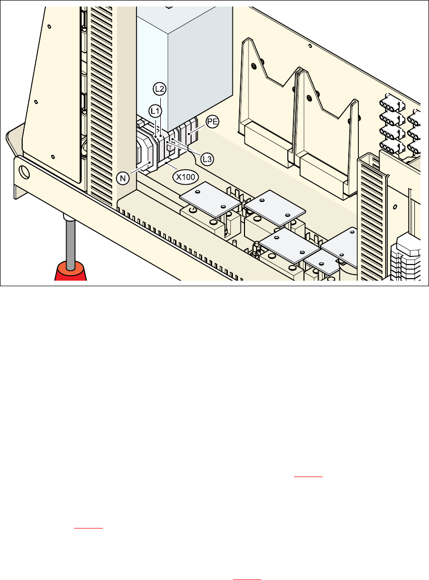 Æ Protáhněte sít'ový napájecí kabel rohovou kabelovou průchodkou ke svorkovnici X100 (viz