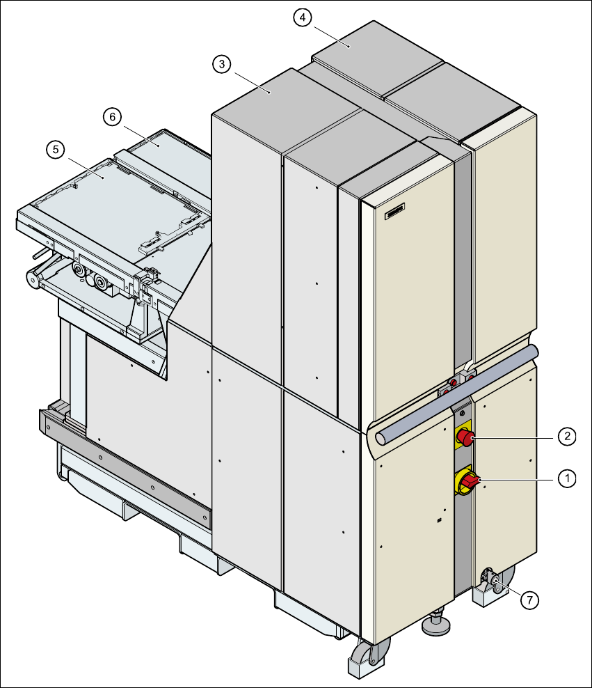 Návod k obs luze SIPLACE HF 6 Manipulace se sou č ástkami Verze software SR.504.xx Vydání 07/2003 CZ 6.8 Matrix-Tray-Changer 269 6 Obr . 6.8 - 2 M ě ni č Matrix-T ray-Changer 2, pohled zep ř edu 1. Podávac í osa 1 2. Pod…