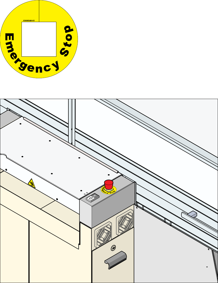 2.2.7 Výstražný štítek W110 na nouzových stop tlačítkách