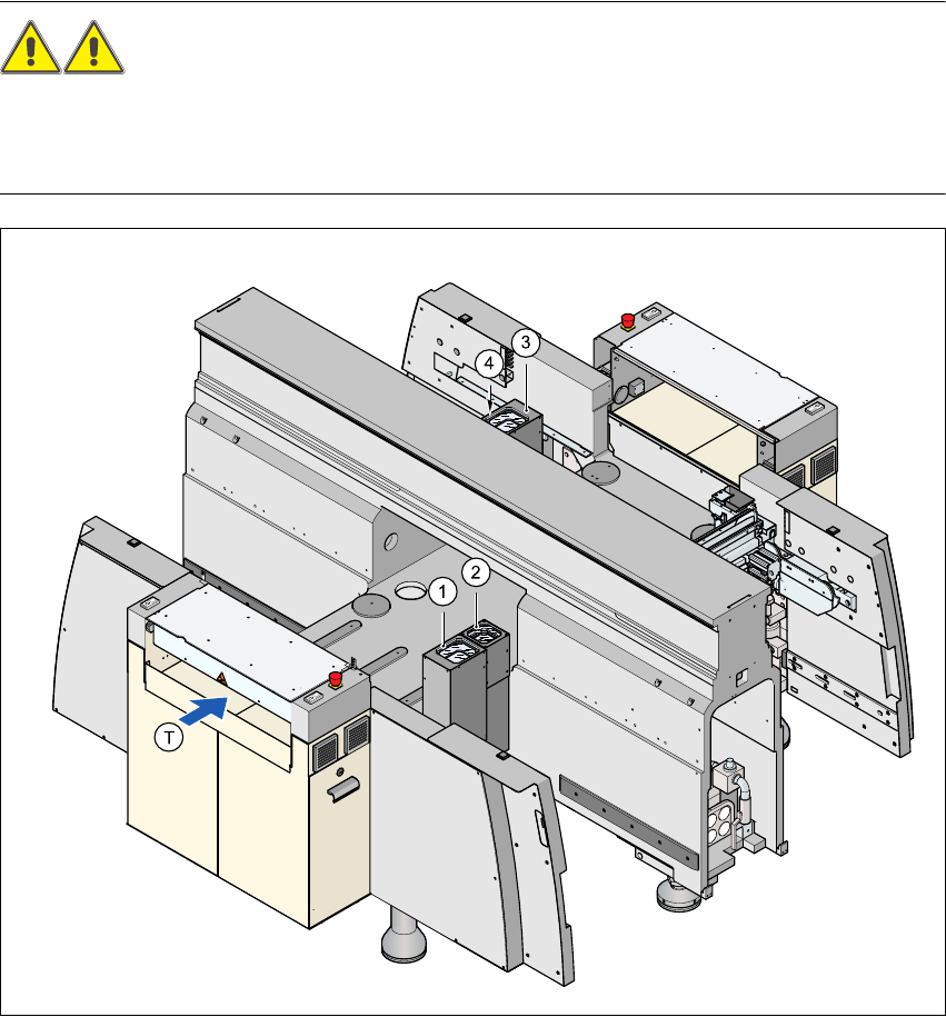 Bezpečnostní koncepce pro výměnu vozíku součástek předpokládá, že obsluha musí stlačit