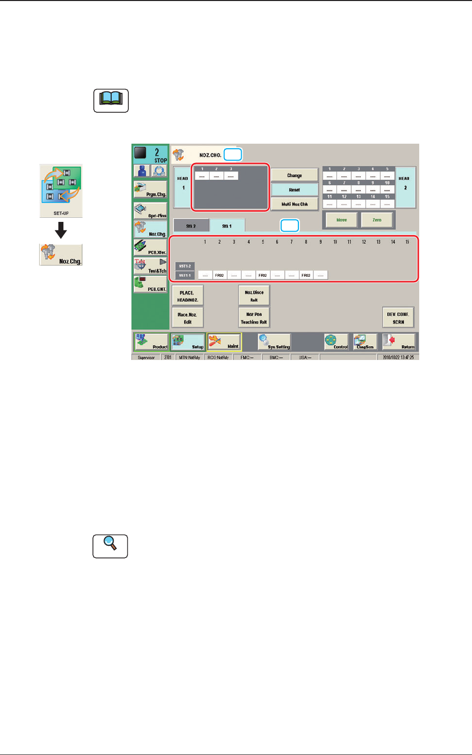 G5 Main Machine Instruction Manual for the details of the "NOZ.CHG."