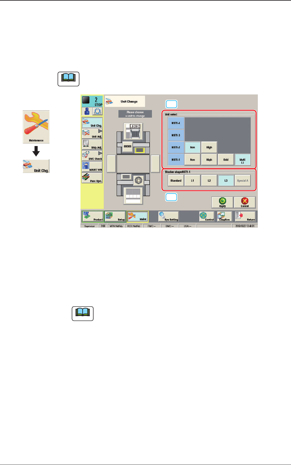 OM-1670 9 5. "NOZ.CHG." Window For the nozzle change, the "Overall Setup" or "Manual Setup" operation is performed. Note (a) The window shows the condition where a multi-functional head is m…