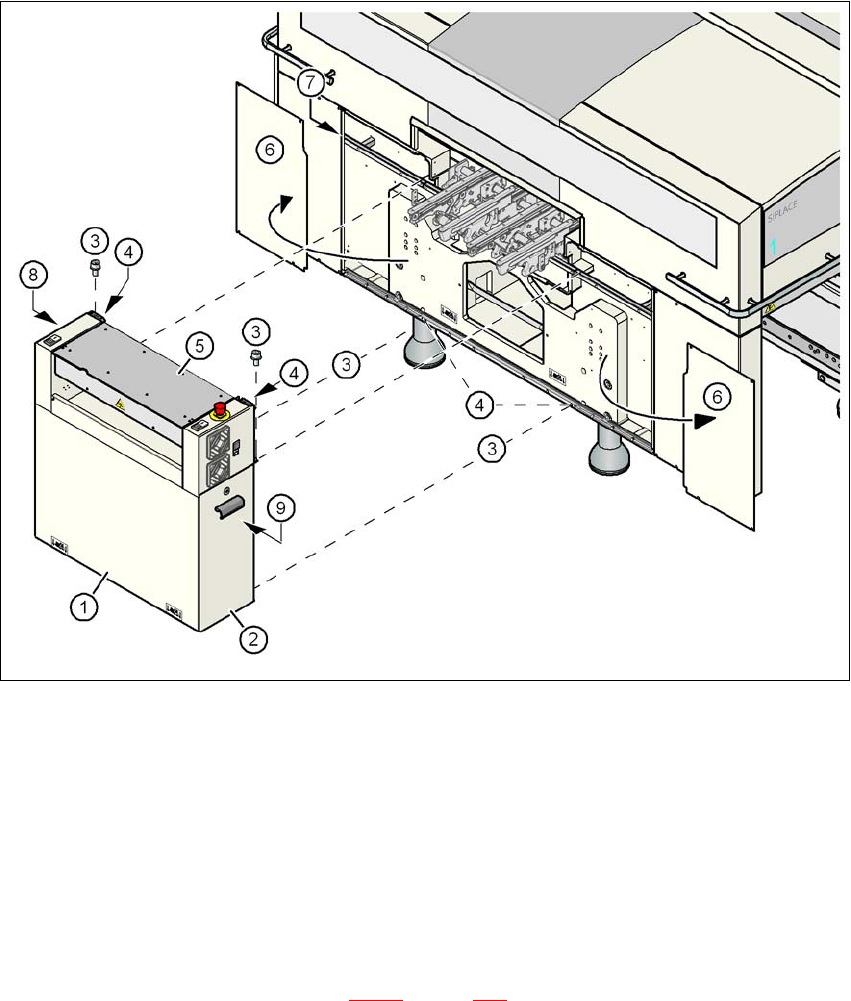 4 安装和试运行 SIPLACE D3 用户手册 4.3 安装贴片机 源自软件版本 SR.605.xx 07/2008 英文版 216 → 卸下输出传 送导轨 (图 4.3 - 12 中的 1 ,第 215 页)上的电缆盖 (图 4.3 - 12 中的 3 和 5 , 第 215 页) 。 → 小心地将轨 道 (图 4.3 - 12 中的 1 ,第 215 页)靠在处理传送导轨上的轨道 (图 4.3 - 12 中 的 2 ,第 215 …