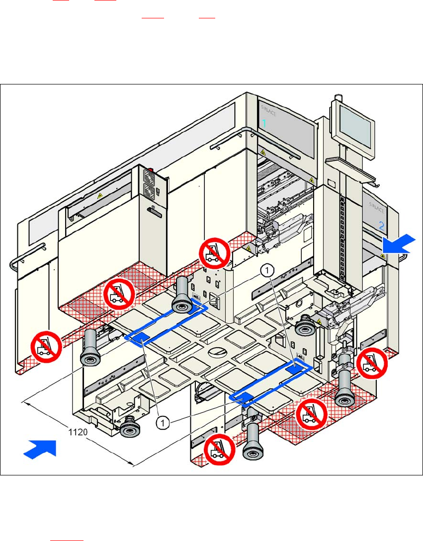 4 安装和试运行 SIPLACE D3 用户手册 4.3 安装贴片机 源自软件版本 SR.605.xx 07/2008 英文版 240 4.3.17 将贴片机集成到生产线上 →注 意 第 195 页第 4.3.2 节的警告说明。 → 有关工具和 设备清单,见第 4.3.3 节,第 196 页。 4.3.17.1 叉车定位 4 图 4.3 - 28 接触表面 - 垂直于 PCB 传送方向的叉子 (1) 叉车叉子的接触表 面 → 使叉车垂直…