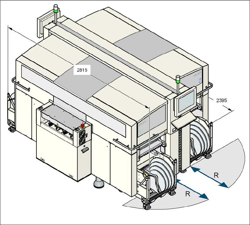 用户手册 SIPLACE D3 3 贴片机的技术数据 源自软件版本 SR.605.xx 07/2008 英文版 3.3 尺寸和重量 105 3.3.5 重心 3 3 3 图 3.3 - 4 贴片机的重心 (mm) 3 X 坐标 0 mm Y 坐标 0 mm Z 坐标 120 mm 高 这些重心的坐标对应于与 PCB 传送高度为 830 mm 的贴片系统。
