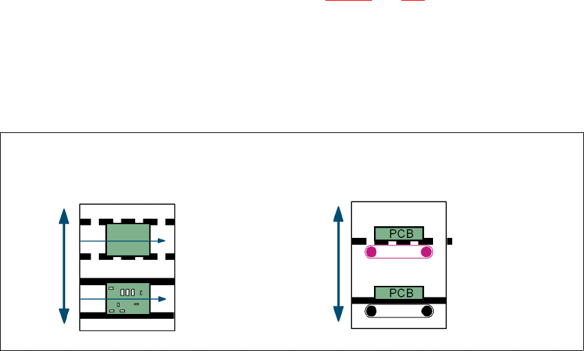 两个传送带携带贴片机下面空的或贴装的 PCB(见图 6.19 - 1,第 341 页)。元件最大高度为 17