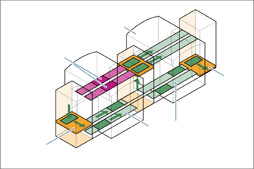 并行排列的贴片机生产线需要很大的空间,因此并行贴片原理在地面传送带和水平 / 垂直升降