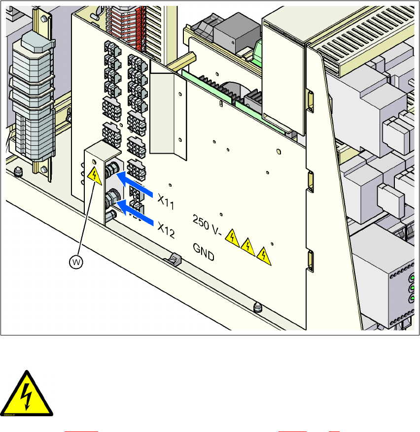 用户手册 SIPLACE D3 2 安全操作 来自软件版本 SR.605.xx 07/2008 英文版 2.2 警告标签 51 2.2.4.2 伺服放大器主电源盖子上的警告 标签 W 图 2.2 - 10 伺服放大器主电源盖子上的警告标 签 W 2 位置 W ,见图 2.2 - 10 (每 个电源单元的编号: 8 )也可参见图 2. 2 - 9 ,第 50 页。