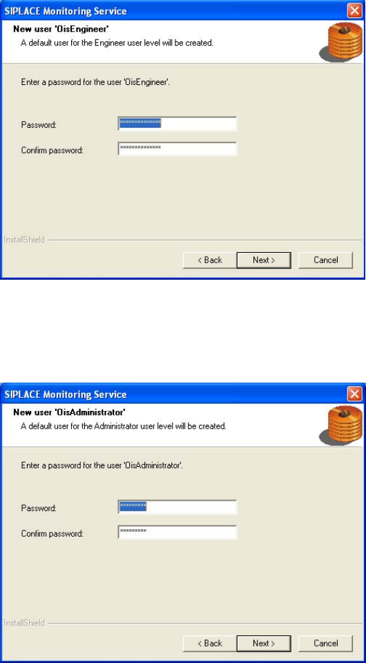 ¾ Enter the password for the OisAdministrator. The default password is "Siplace.1".