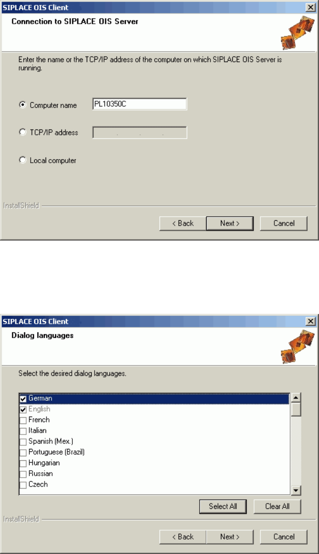 Installation Manual OIS 8.0 Installationsanleitung OIS 8.0 3.2.3 Installing OIS Client Note: An OIS server must be installed and run ning before installing a client. ¾ Select the machine type on which the OIS client is t…