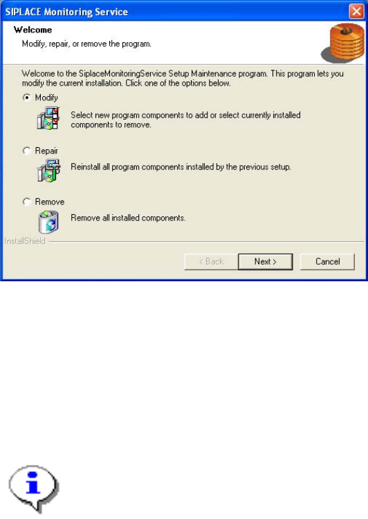 ¾ Select the program from the list (SIPLACE OIS / SIPLACE Monitoring Service)and click on