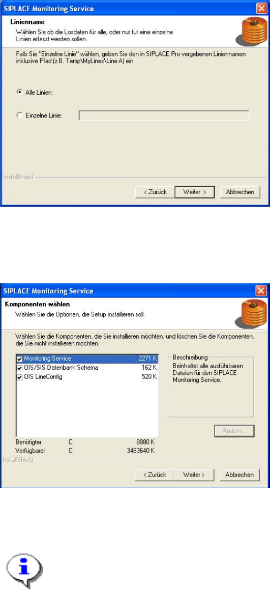 Installation Manual OIS 8.0 Installationsanleitung OIS 8.0 3.2.2 Monitoring Service-Installation ¾ Wählen Sie die Linie(n) für wel che die Losdaten erfasst werden soll en. ¾ Klicken Sie auf die Schaltfläche Weiter > .…