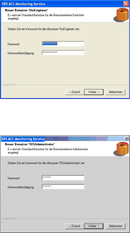 In den nächsten beiden Dialogen haben Sie die Möglichkeit, jedem Benutzer ein Passwort zu zuordnen.