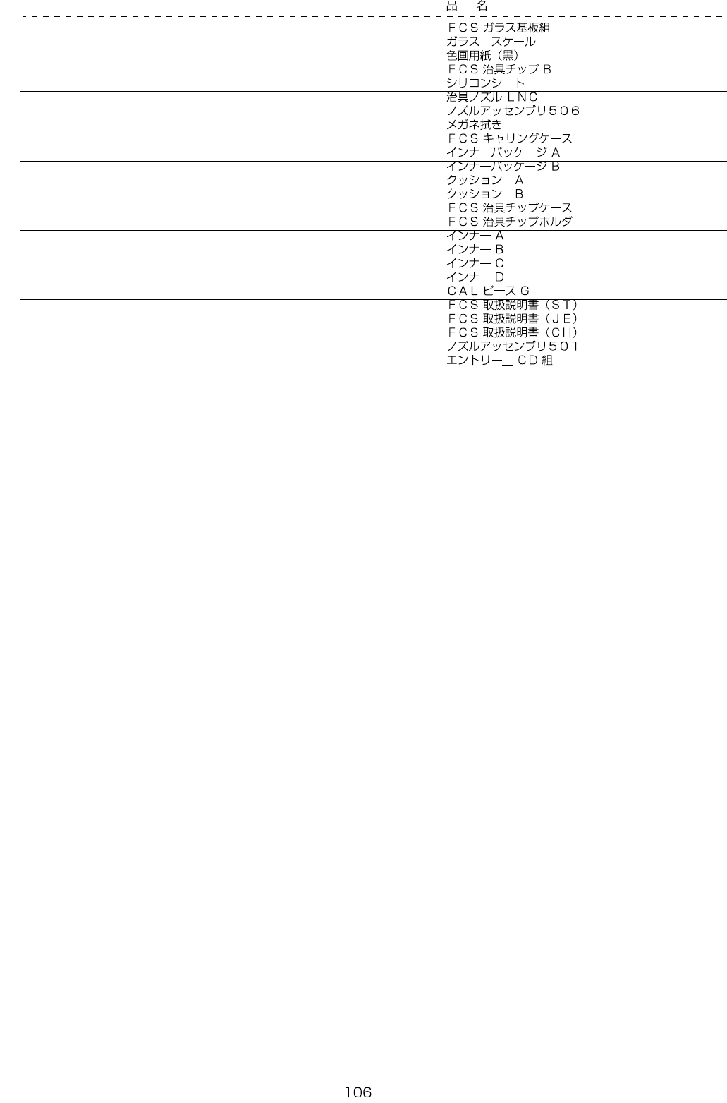 - - REF.NO NOT E PART NO D E S C R I P T I O N Qty 1 400-80943 FCS GLA SS PWB ASW 1 2 L191E-021-000 GLASS SCALE (1) 3 400-80944 DRAWIN G PAPER (1) 4 400-20304 FCS JIG CHIP B 2 5 400-27147 SILICON SHEET 250 6 400-46647 …