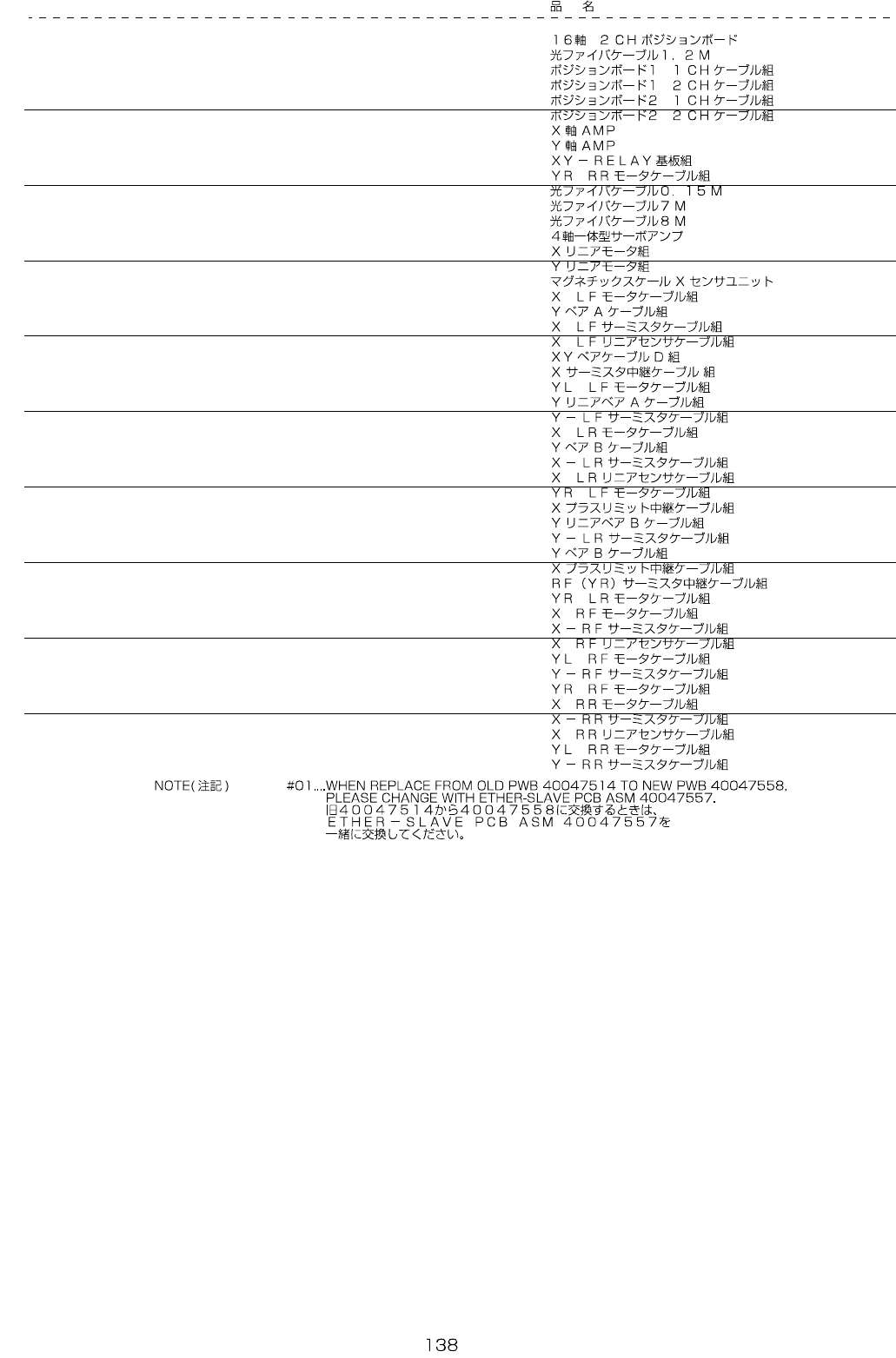 - - REF.NO NOTE PART NO D E S C R I P T I O N Qty 1 40 0-44540 16AXIS 2 CH SERVO CONTROLL ER 2 2 40 0-48069 OPTICAL F IBER CABLE 1.2M 4 3 40 0-47930 POS BOAR D1 1CH CABLE ASM 1 4 40 0-47931 POS BOAR D1 2CH CABLE ASM 1 …