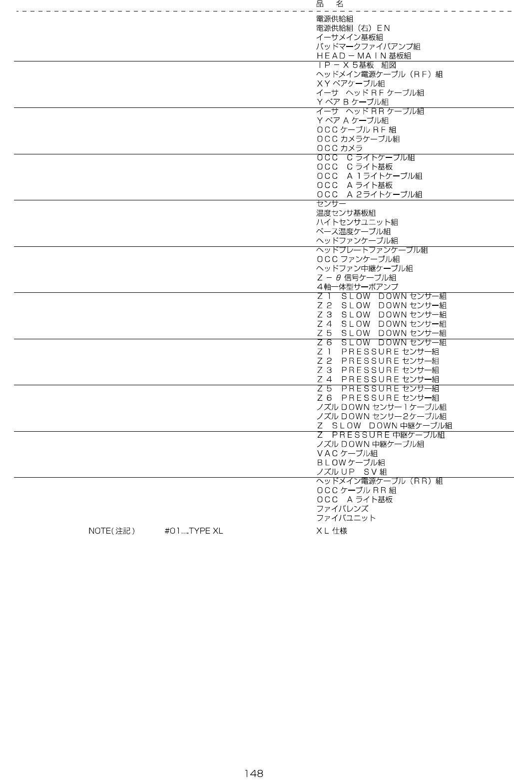 REF.NO NOTE PART NO D E S C R I P T I O N Qty