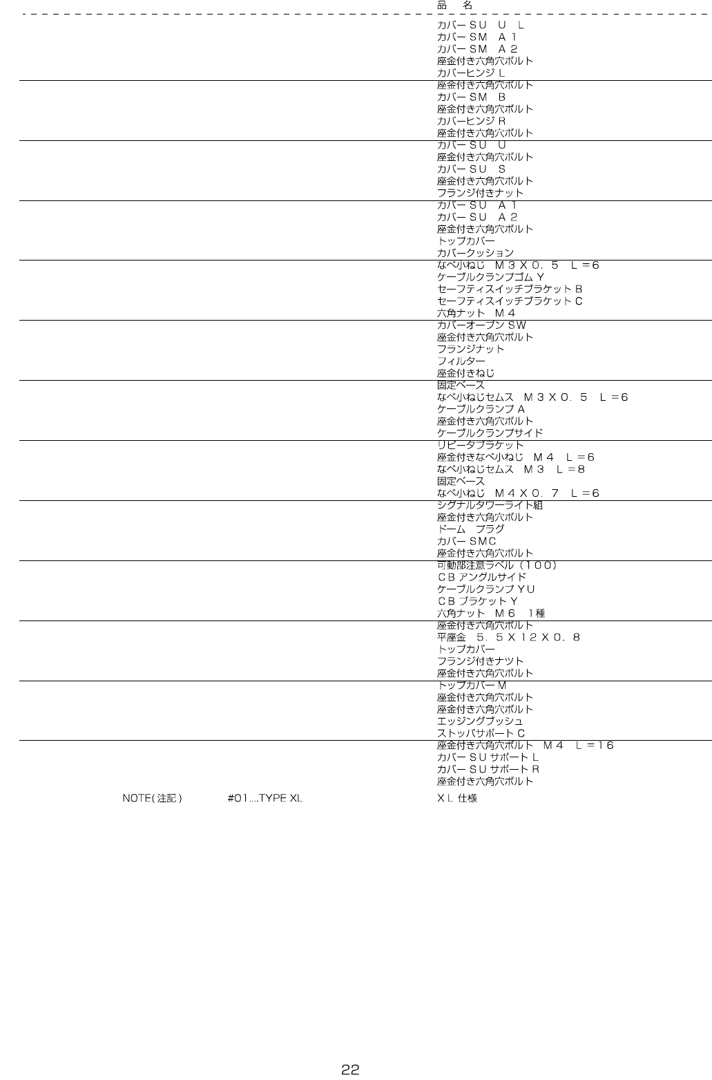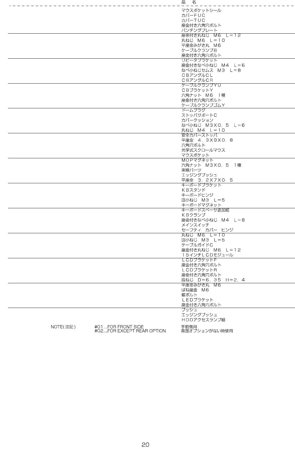 REF.NO NOTE PART NO D E S C R I P T I O N Qty