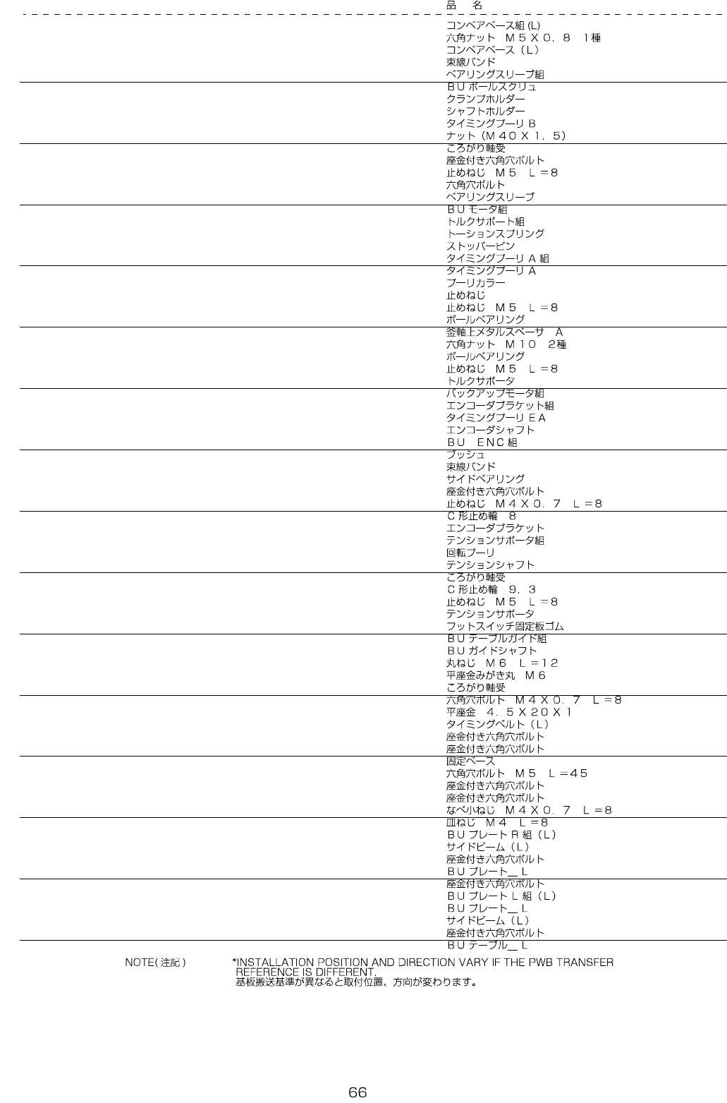 - - REF.NO NOTE PART NO D E S C R I P T I O N Qty 1 40 0-88320 CONVEY OR BASE ASM(L) 1 2 NM-6 050001-SC NU T M5 (4) 3 40 0-01024 CONVEY OR BASE(L) (1) 4 EA -9500B01-00 CABLE BAND (4) 5 40 0-00921 BE ARING SLEEVE ASM. (…
