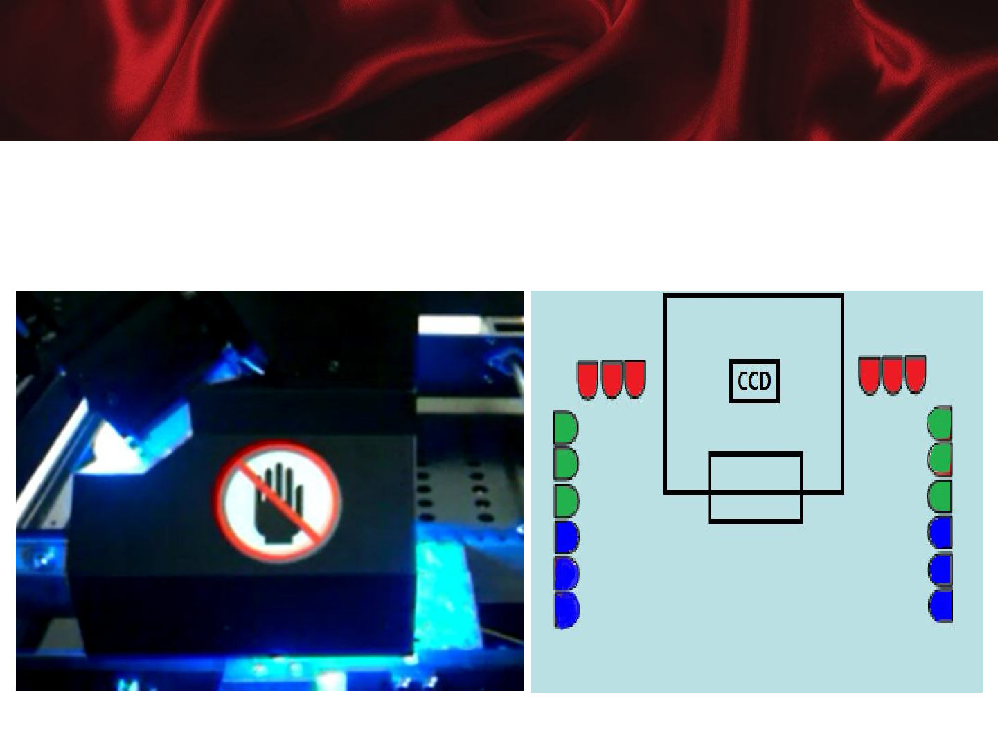 R G B 三色光源,CCD相机抓取不同光源反射回的照片。