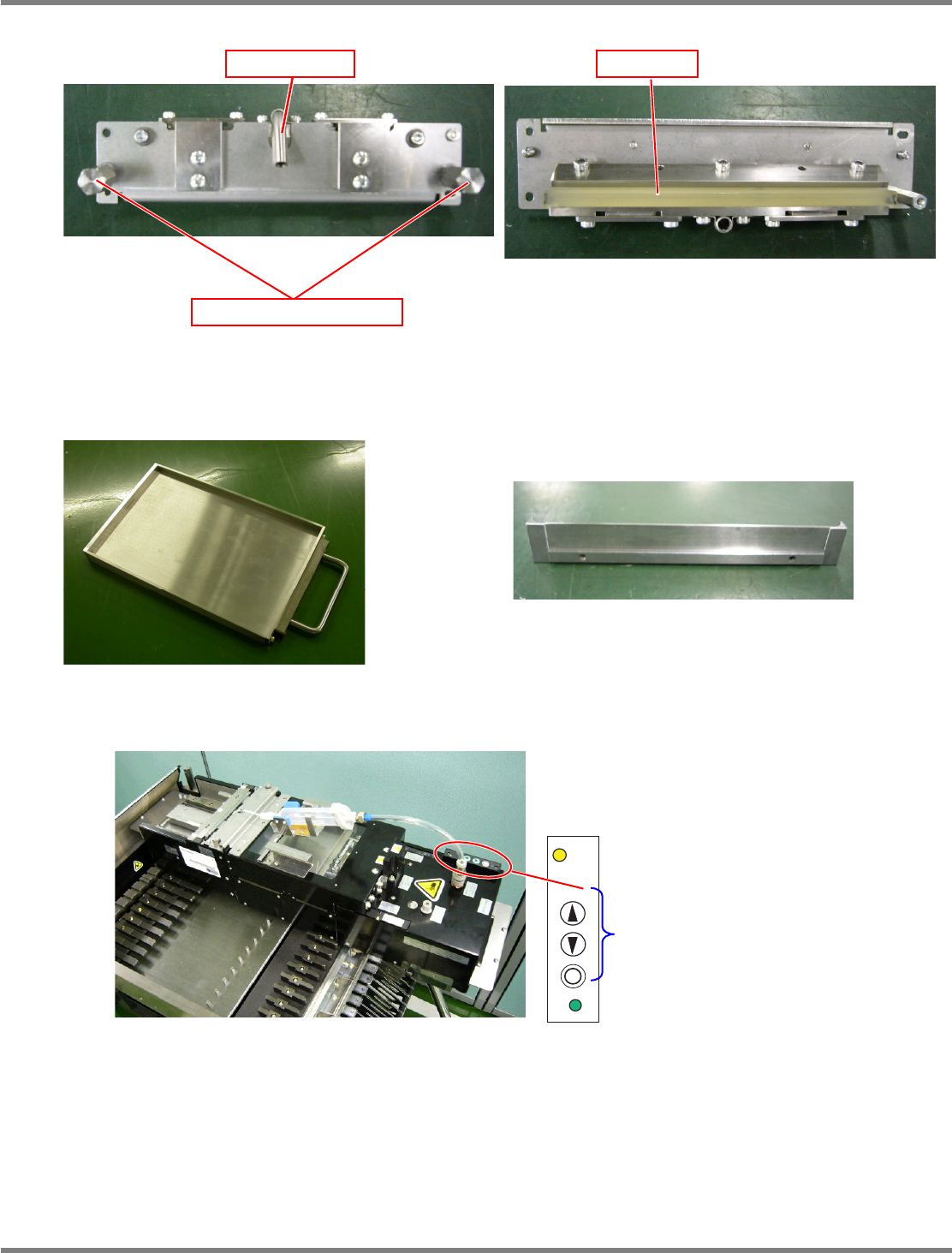 NPM-D 通用型转印装置 1.2 各部的名称 Page 1-4 MFTU-EJM1DC-MB-0 1N-00 z 转印装置下面 MFTU-113P 装置把手(前) 导轨块 空气压力连接 电气连接器 导轨轨道 导轨轨道切口 z 卸下盖后的状态 z 卸下刮刀装置和刮板的状态 MFTU-NPM-PIC007 转印台 空气压力计 调节器 刮刀装置 MFTU-NPM-PIC005 MFTU-NPM-PIC006 刮板安装部 刮刀 安装螺丝 刮板…