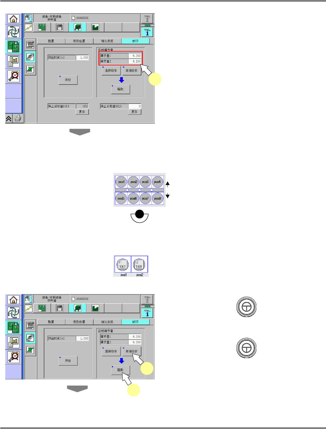 NPM-D 通用型转印装置 3.2 机种切换 MFTU-EJM1D C-MB-03N-00 Page 3-3 3.2 机种切换 下面对机种切换准备进行说明。 1 按动第一级别的 。 2 按动第二级别的 。 3 按动第三级别的 。 4 按下 [ 转印 ] 。 ChangeFdrStamper Unit-01C00 1 ChangeFdrStamper Unit-01C00 2 3 4