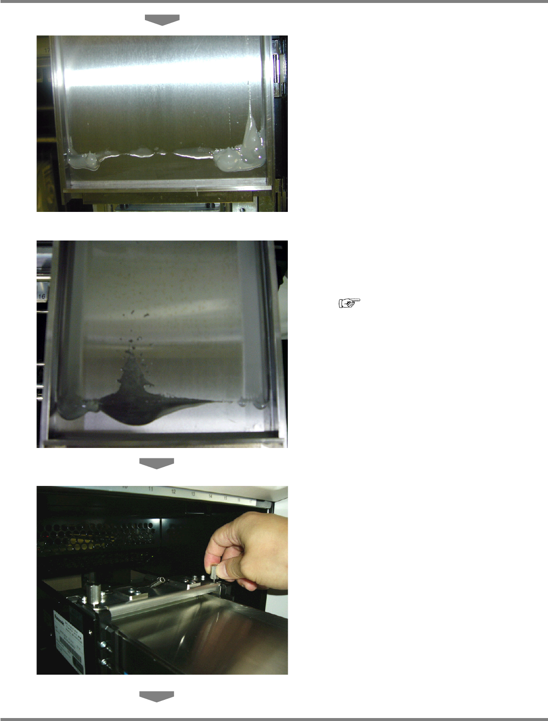 交换转印材料和生产结束时,请按照以下步骤,在卸下刮刀装置、刮板以及转印台后,进行清扫以及检查。