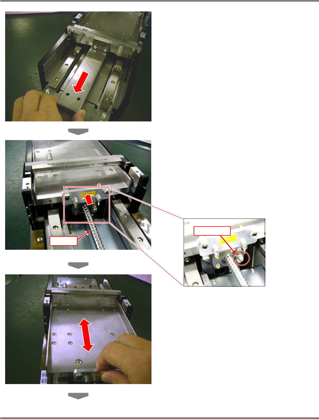 请按下述步骤,给滚珠丝杠注油。请注意不要丢失拆下的螺丝。