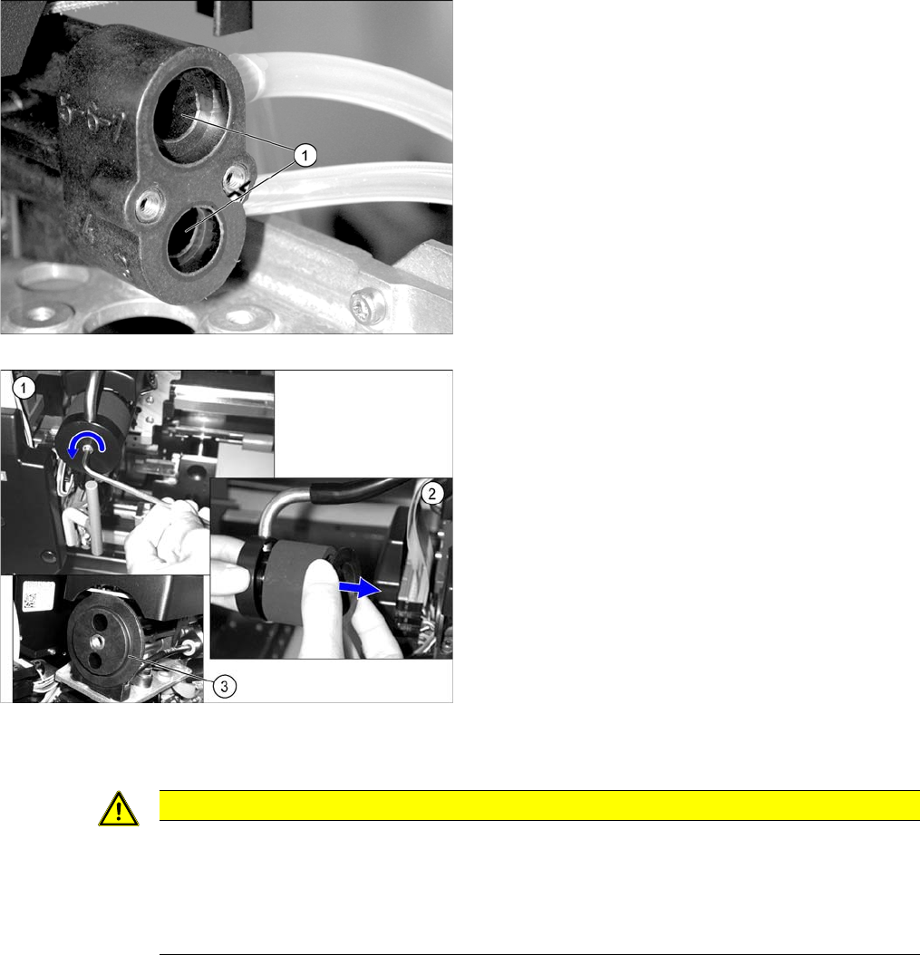 ► Wipe the black O-ring (1) for the turning station clean