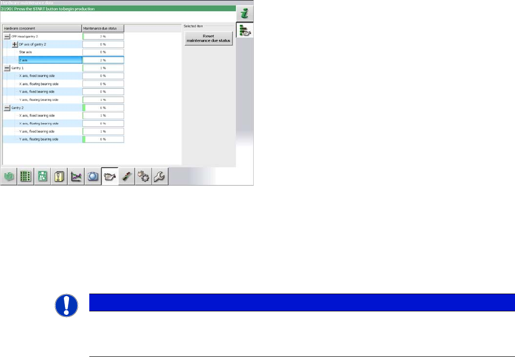 The maintenance status is calculated from the placement cycles, temperature and operating hours. The