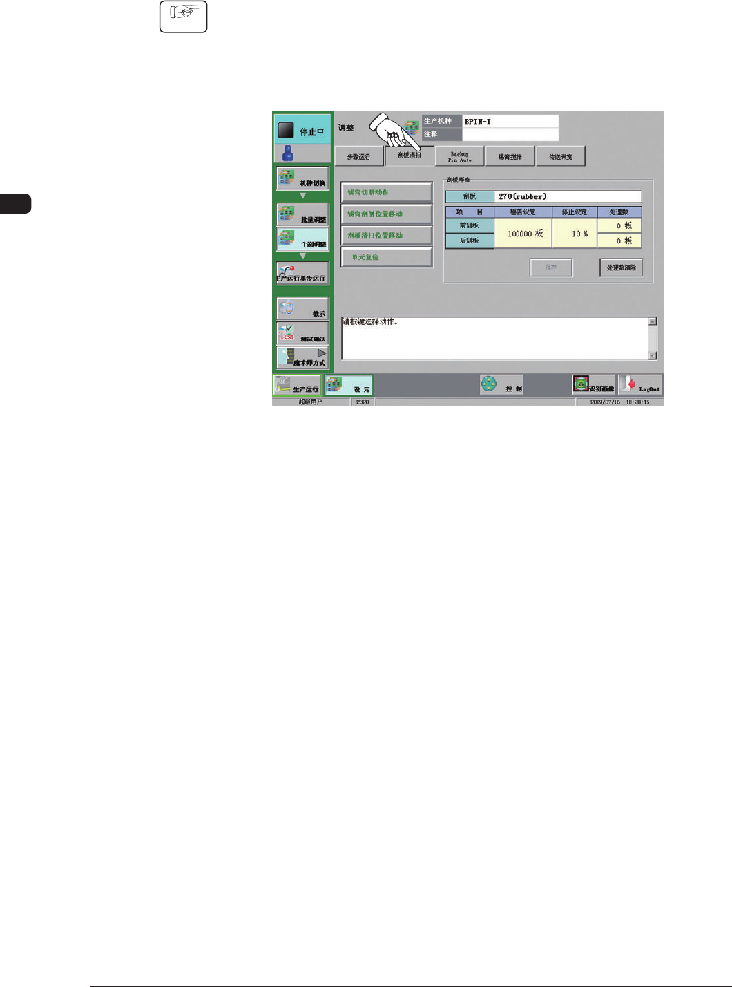 (2) 按 [ 刮板清扫 ( 更换 )]Tab。