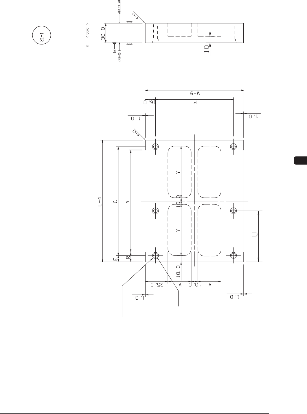1OM-1513 6-6 第六章1.支撑治具制作规格 1.3.3 元件部 ( 元件编号 21-2) 的变形图 3-M5 Depth 15 Counterbore Depth 5 Depth from Back 8 Material : A5052 Processing : None F1F4 0908-001