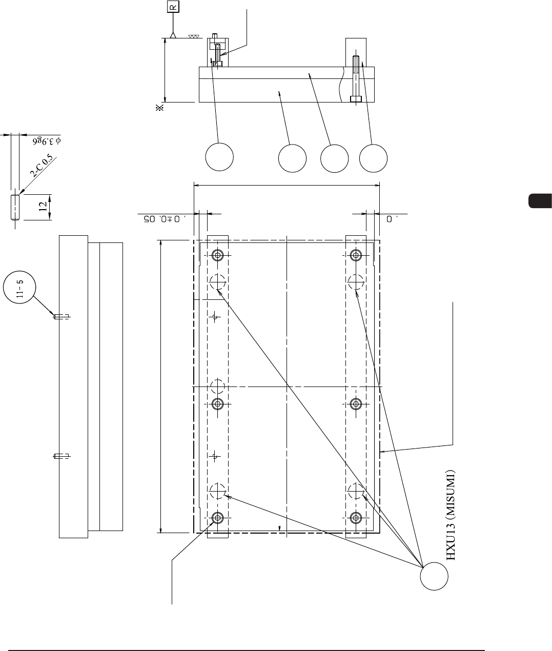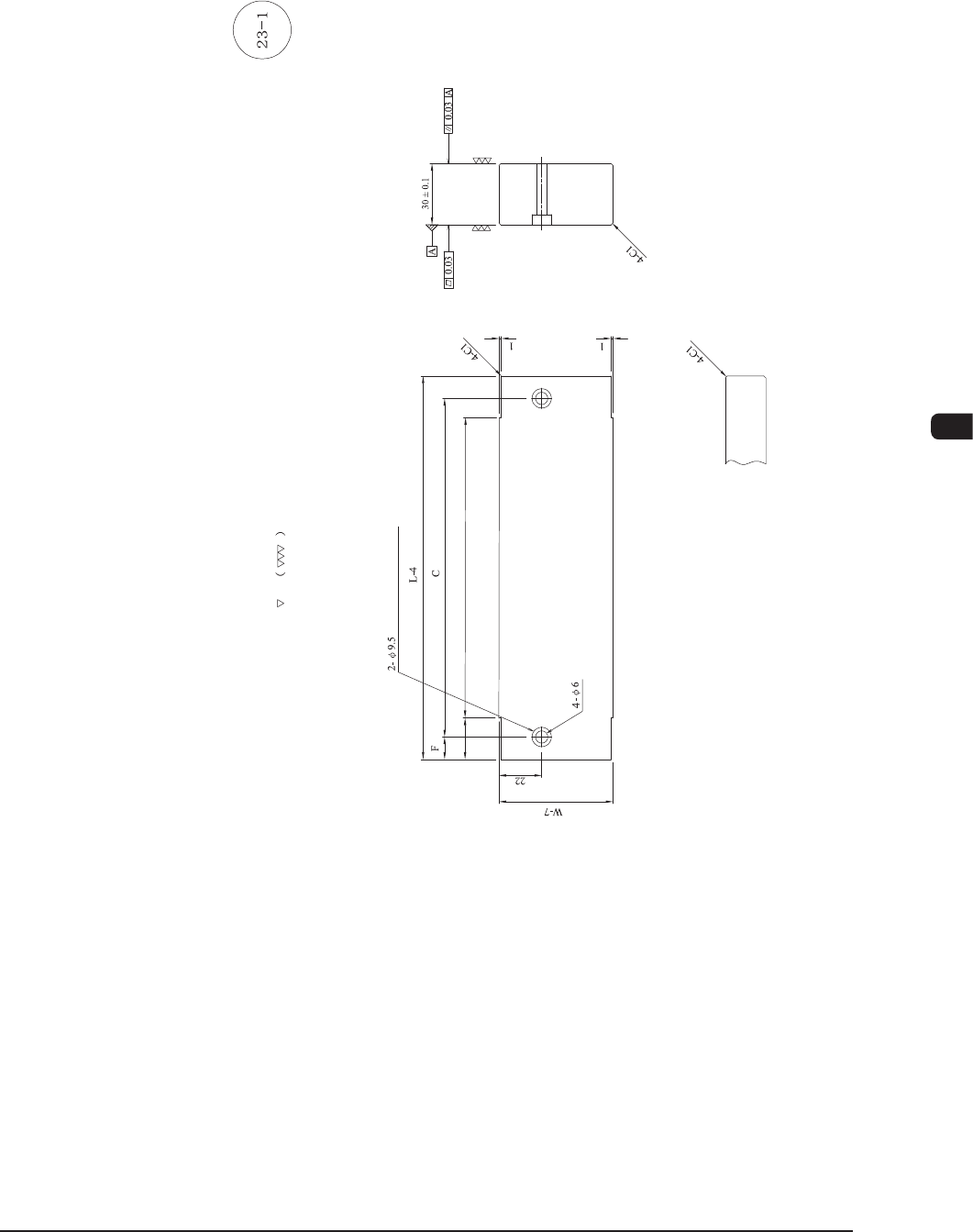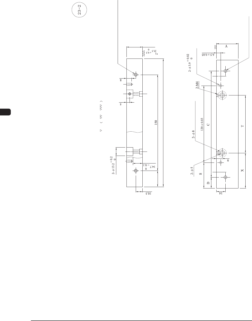 1OM-1513 6-14 第六章1.支撑治具制作规格 1.5.3 元件部 ( 元件编号 23-2) 的变形图 Counterbore Depth 5 Material : A5052 Processing : None Depth from Back 8 2-M5 Depth 15 (Prepared Hole Not Penetrable) 2- M5 HELISERT 2D (Prepared Hole Penetrabl…