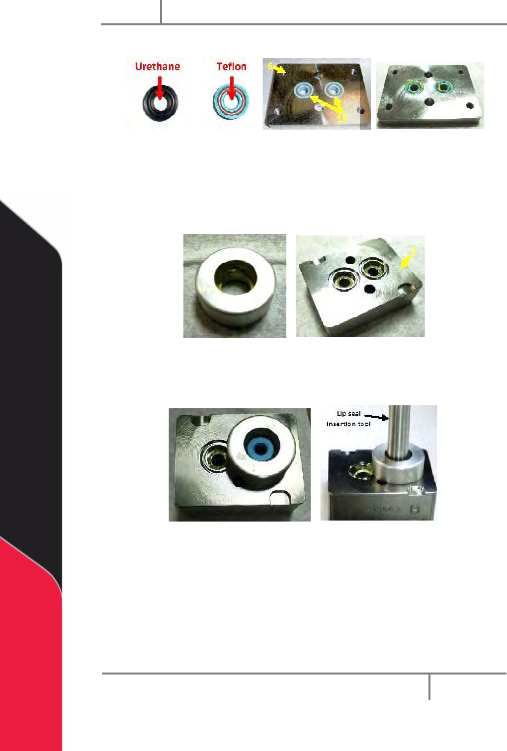 9. Use your hands to push two lip seals (Teflon® seals shown), O-ring side up,