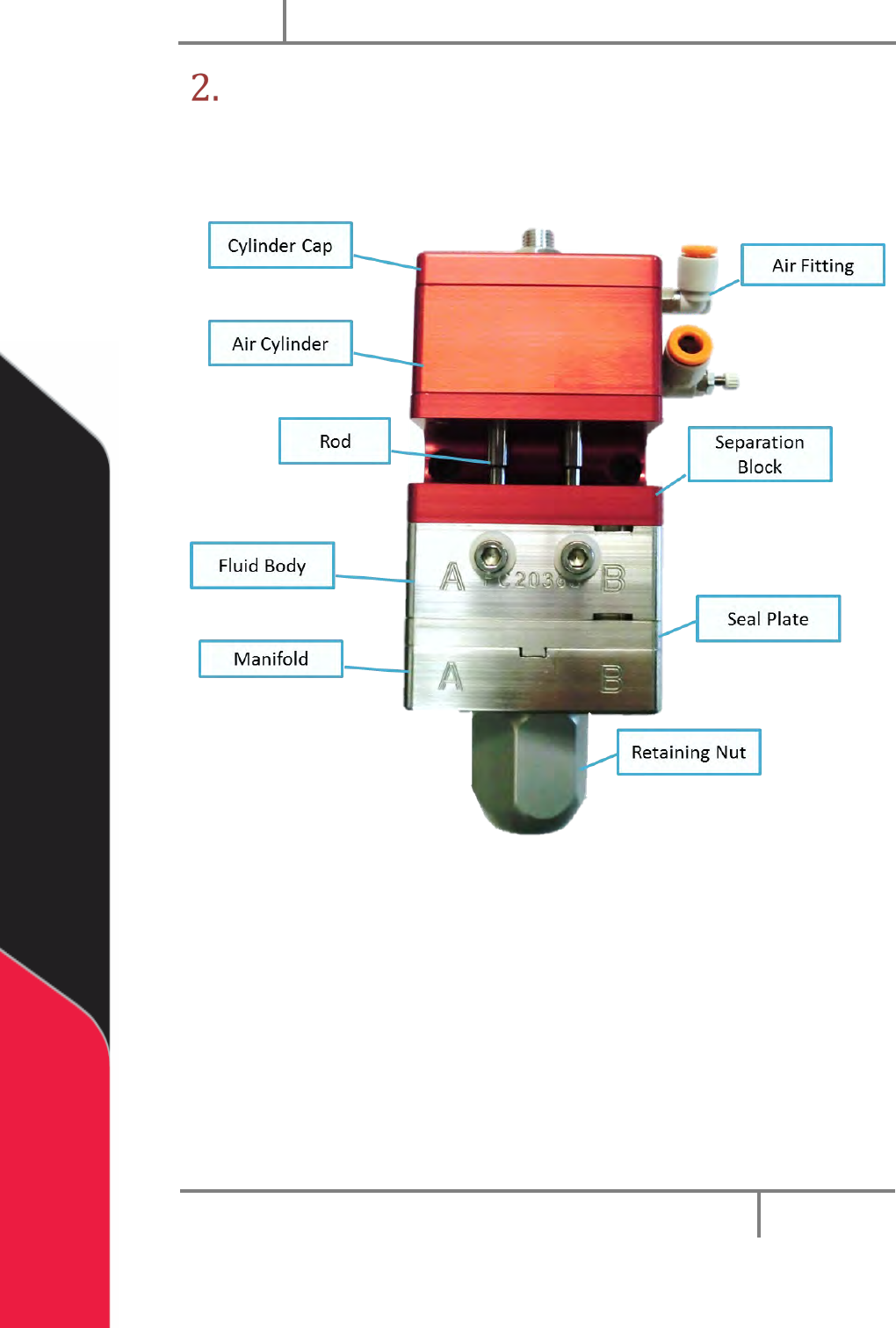 The fluid section includes two rods with lip seals on each side of the valve to control