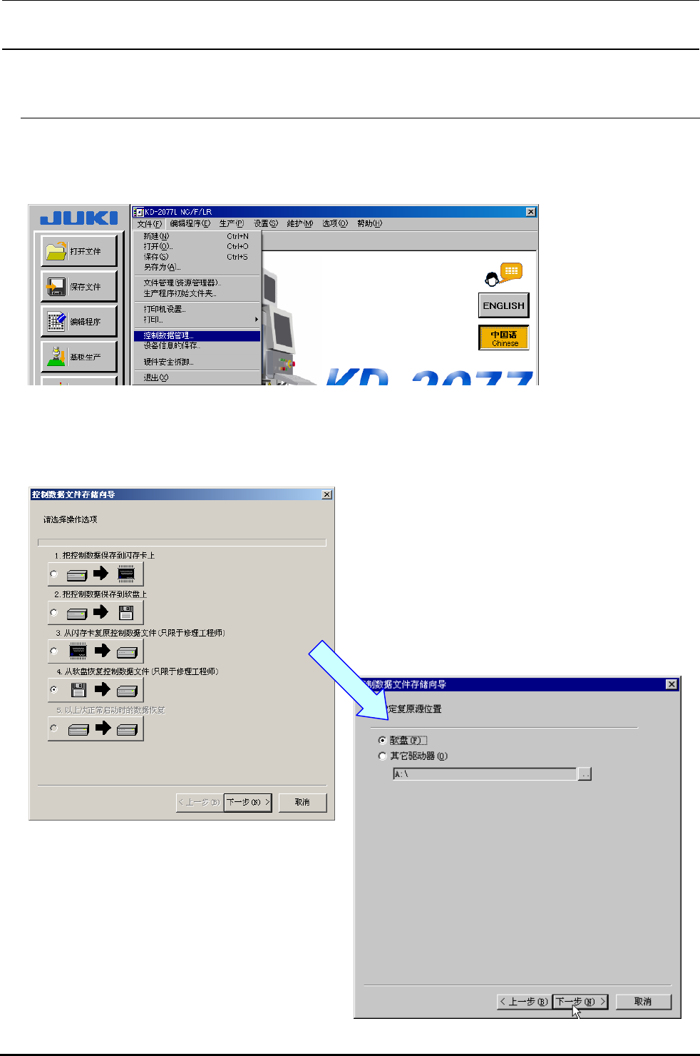 控制数据文件存储向导被显示出来。这时,请选择「从软盘恢复控制数据文件」,然后选择下一步
