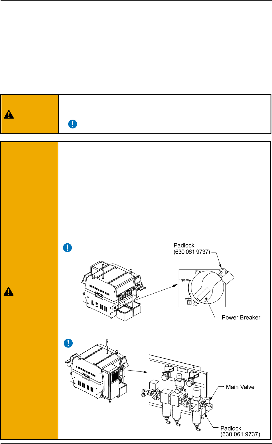 • Before maintenance work, be sure to lock the power breaker and the