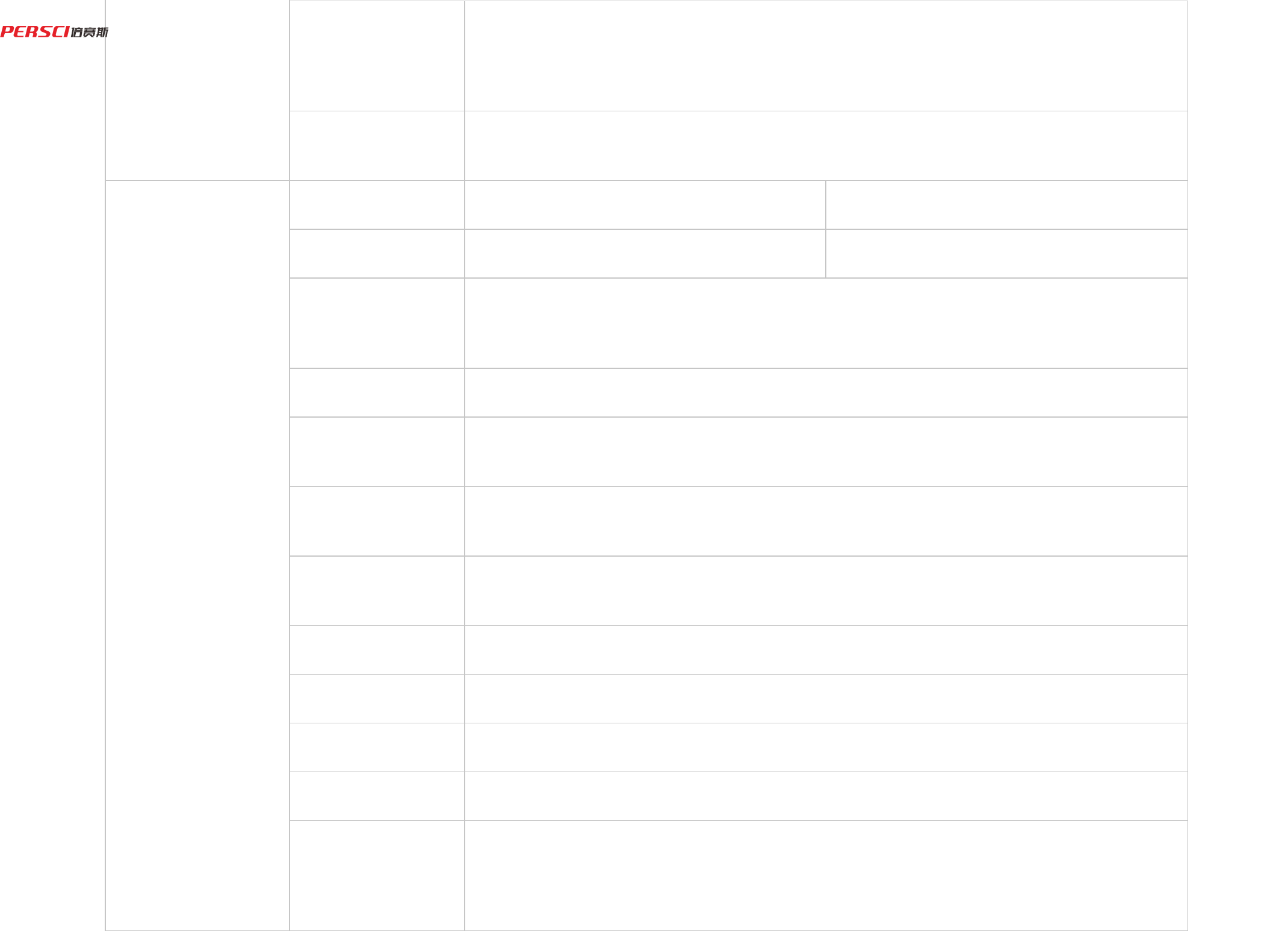 Parameter PRODUCT PARAMETERS