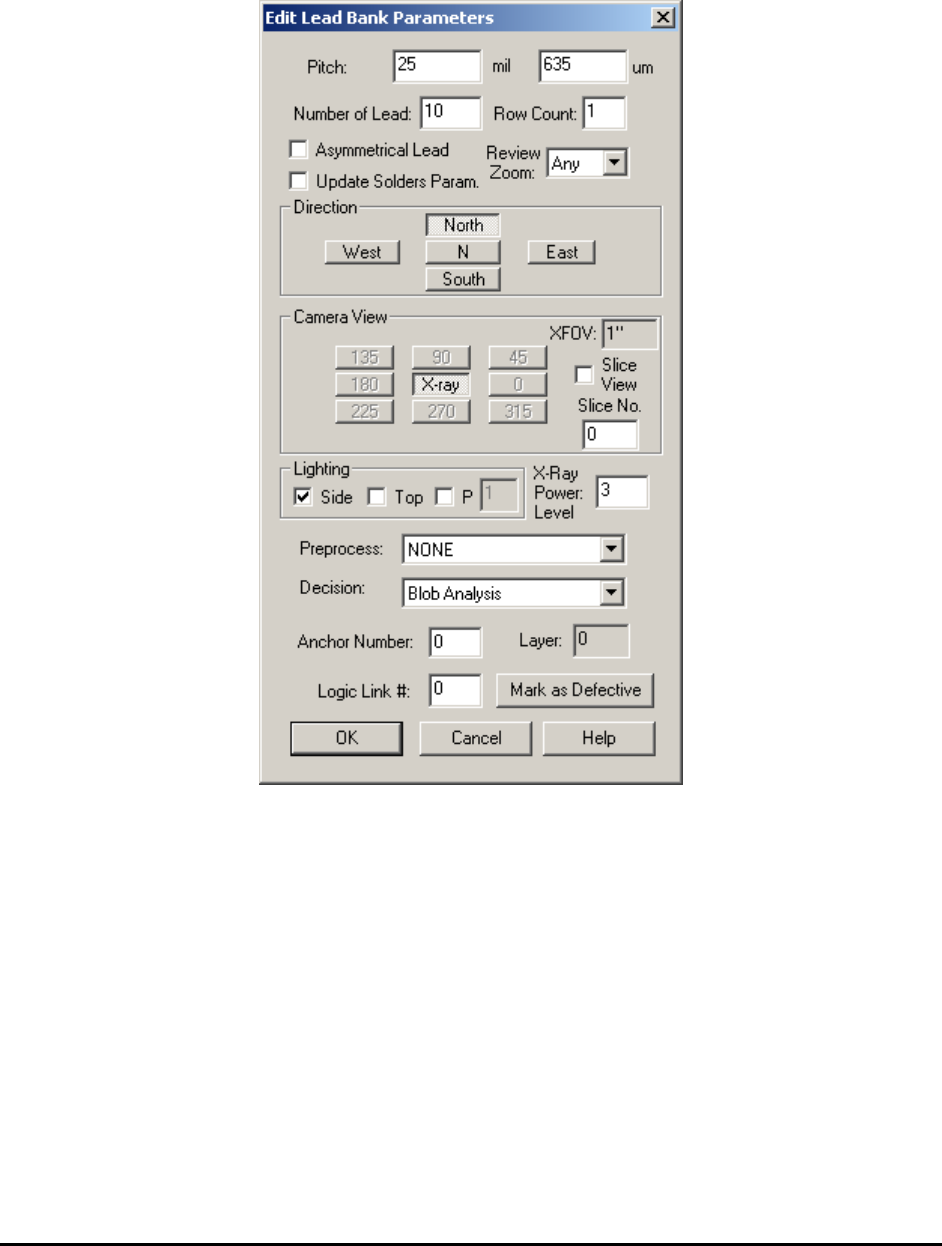 General Inspecti on Methodolo gy 10 - 11 10.3.1 Edit Lead Ban k Parameters Select Edit Lead Bank Par ams.. from the Lead Bank pop-up menu to open the Edit Lead Ba nk Parameters dialog. Set the pitch of the lead, the numb…
