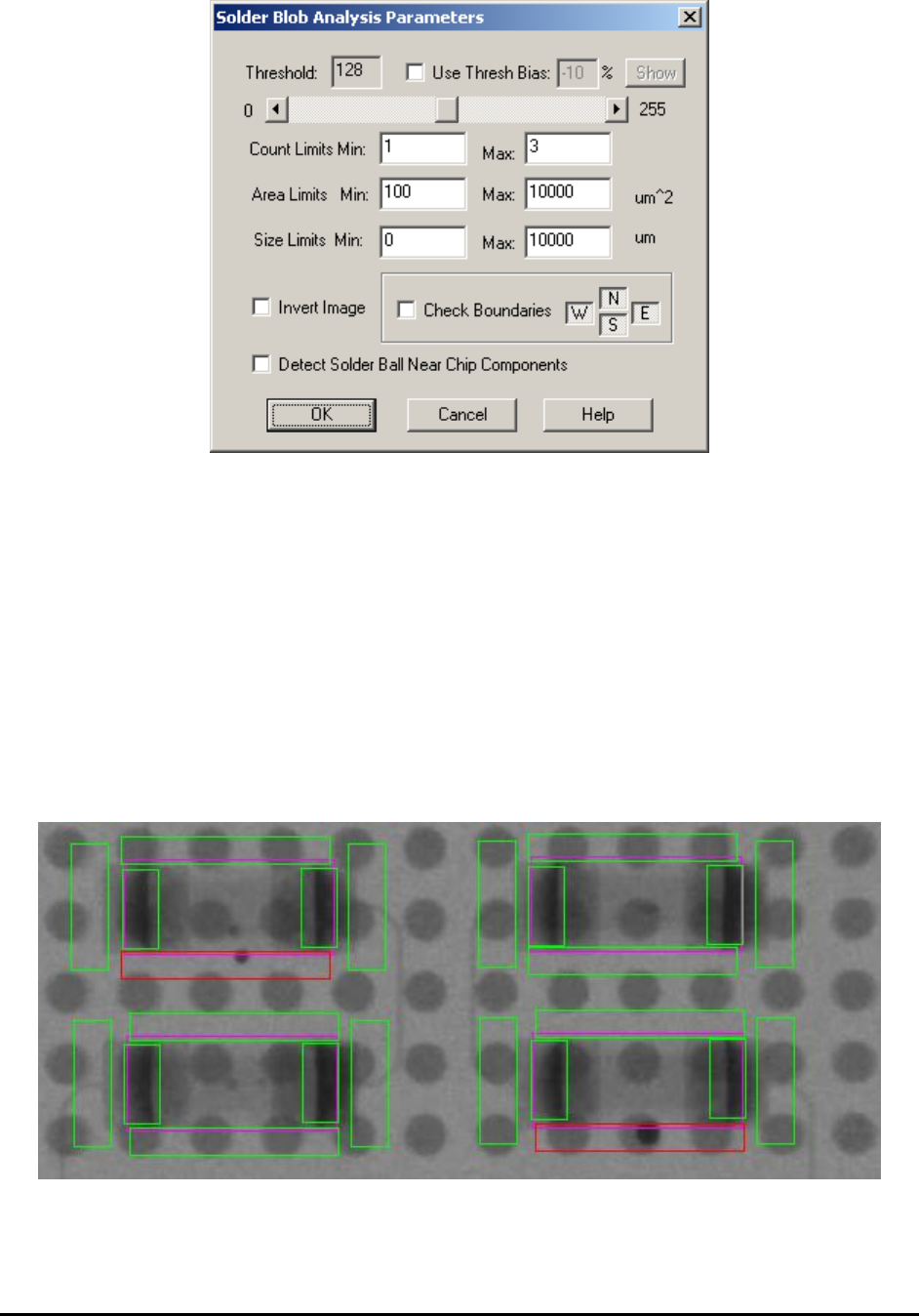 set to 0s. The Area Limits Min should be set to the minimum area of the solder ball that is
