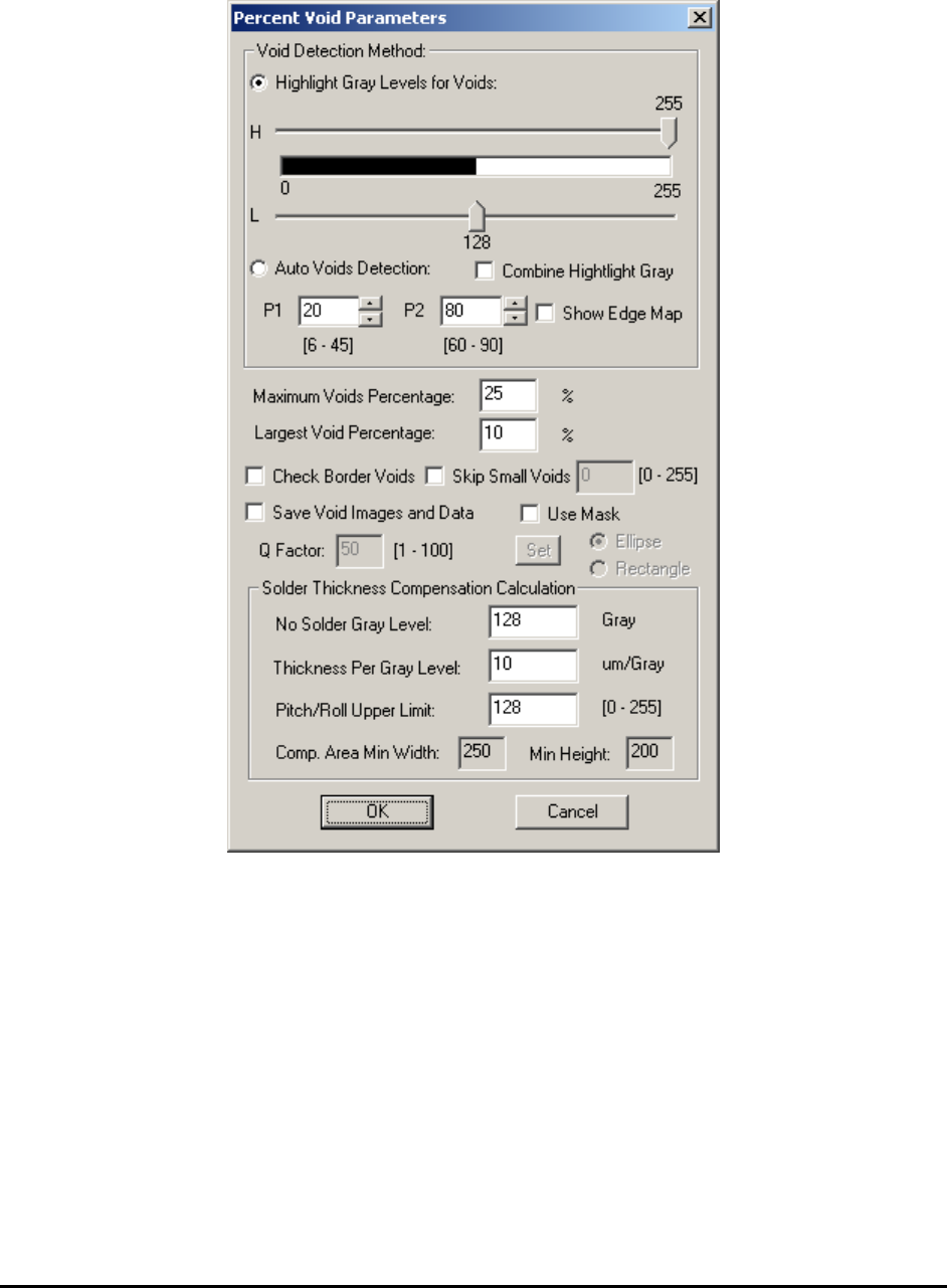 Select Percent Void Params from the Solder pop-up menu to open the Percent Void Parameters