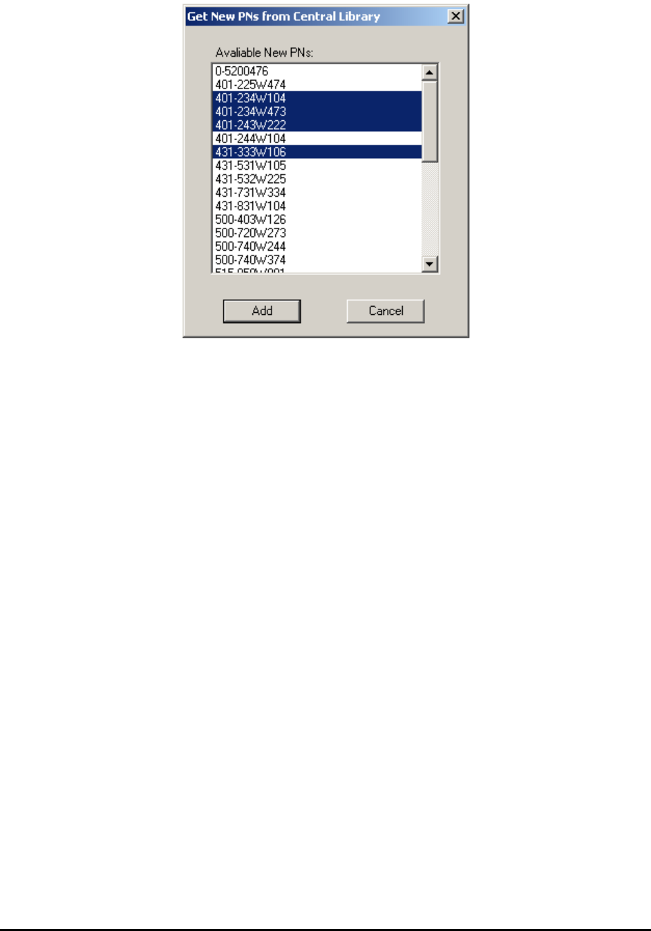 Pull in additional part numbers by using the Get New PNs from Central Lib button. Pressing