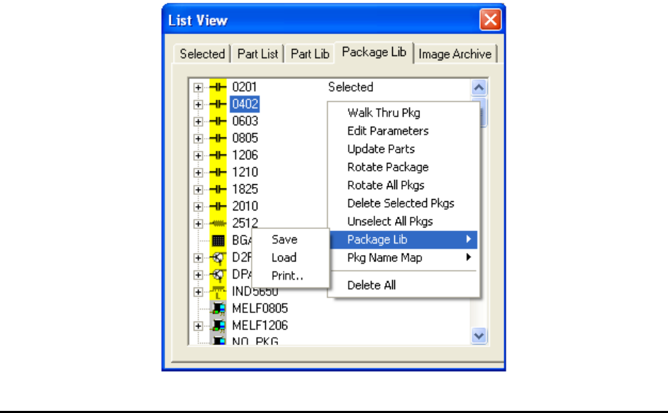 The package of a part contains attributes such as part size, number of leads, lead pitch, etc. For